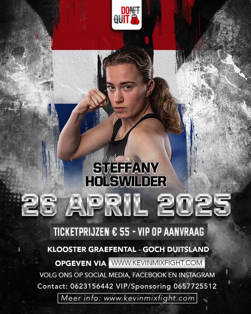 Na een lange tijd heeft Steffany Holswilder weer een match te pakken. Zondag 23 februari zal ze uitkomen voor ReBo op het XL gala van Fight Team Heresh in Dordrecht.
