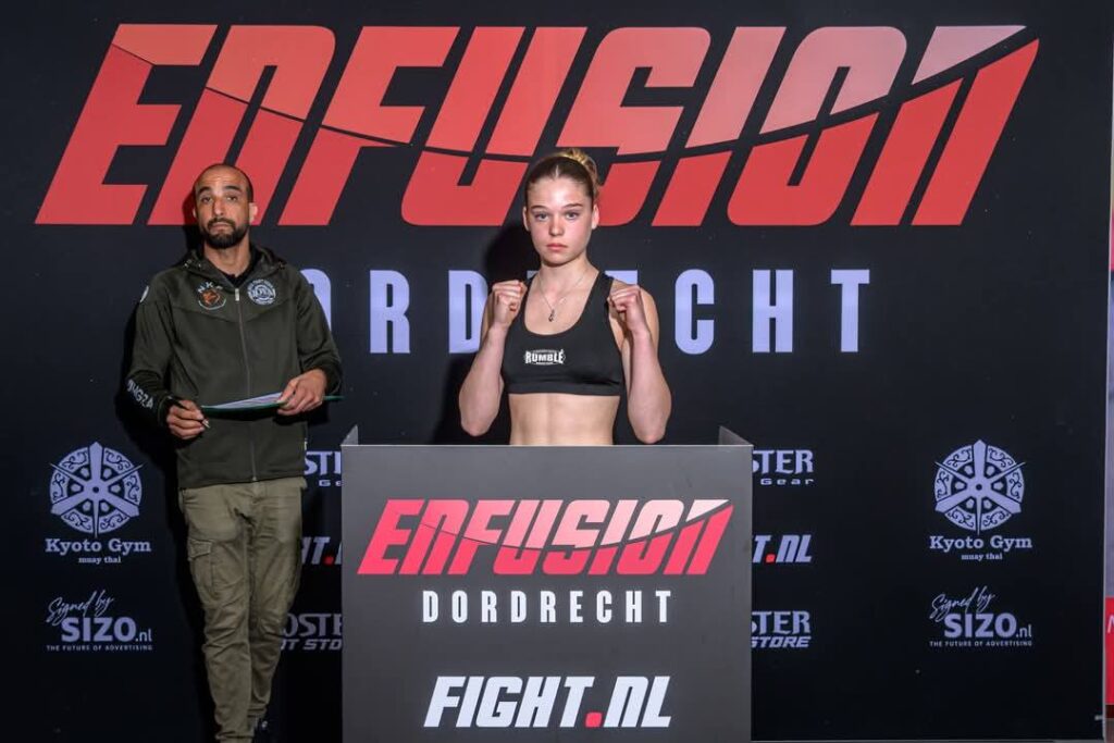 Met trots delen we mee dat jeugdvechter Yélina Jasperse is benaderd door Enfusion met de vraag of ze 30 december een partij wil draaien! Haar wedstrijd 3 december ging niet door i.v.m. ziekte tegenstander dus de partij moest nog gedraaid worden.